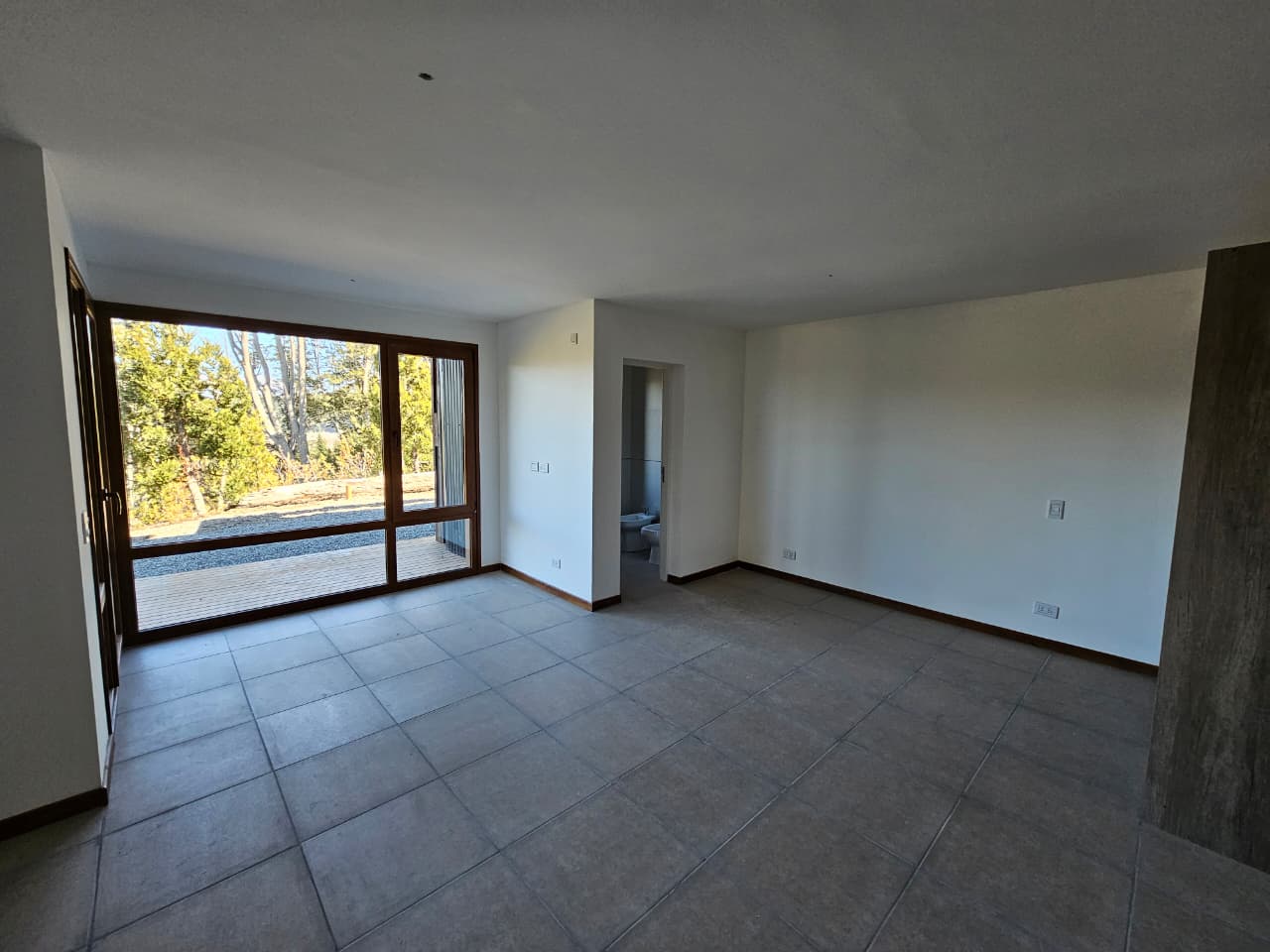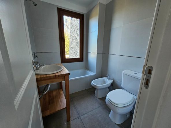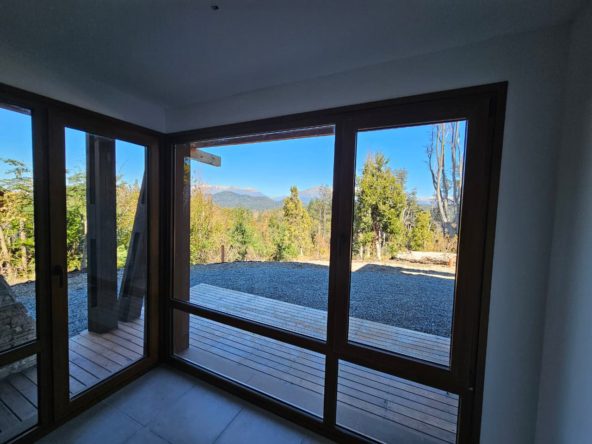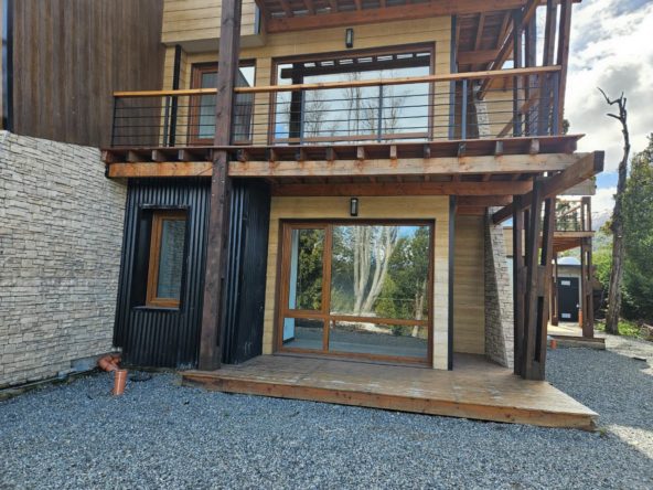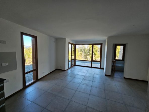 Departamento Monoambiente en planta baja, con baño, cocina y balcón. Cuenta con vistas a la cordillera y parciales al lago Nahuel Huapi. Aberturas exteriores de PVC símil madera, pisos de cerámico y balcón de madera. Revestimientos exteriores de Piedra, Madera y Siding. Calefacción por Loza Radiante.